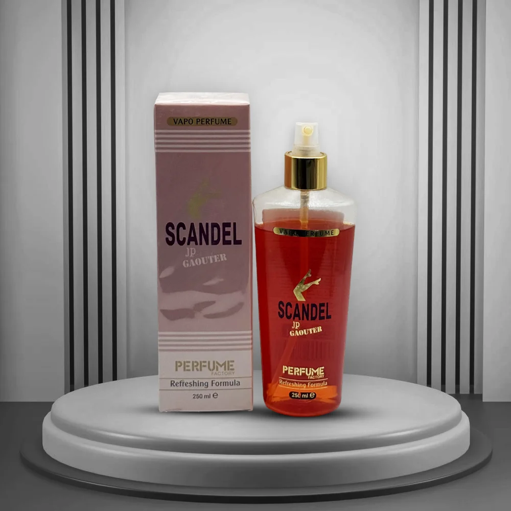 بادی اسپلش Scandel با رایحهای مشابه اسکندل (Scandal) از برند ژان پل گوتیه (Jean Paul Gaultier)، یک رایحه زنانه جسور، شیرین و اغواگر است که ترکیبی از رایحههای گلی، عسلی و چوبی را در خود جای داده است.